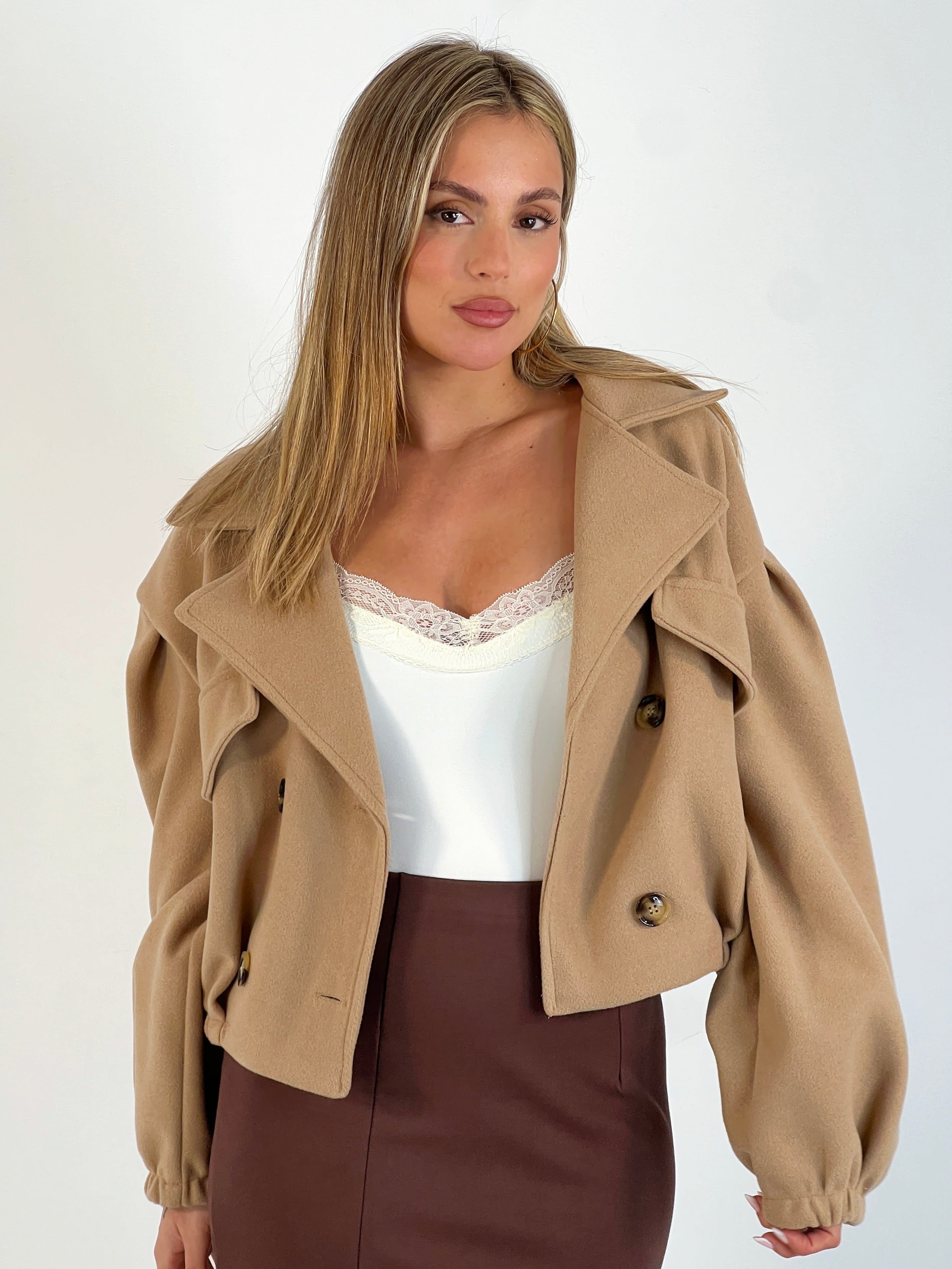 Este abrigo corto de paño combina elegancia y funcionalidad, ofreciendo una prenda cálida y resistente ideal para el clima frío. Su confección en tejido de paño garantiza durabilidad y un acabado refinado. Perfecto para complementar tanto atuendos formales como casuales con un toque sofisticado y práctico.