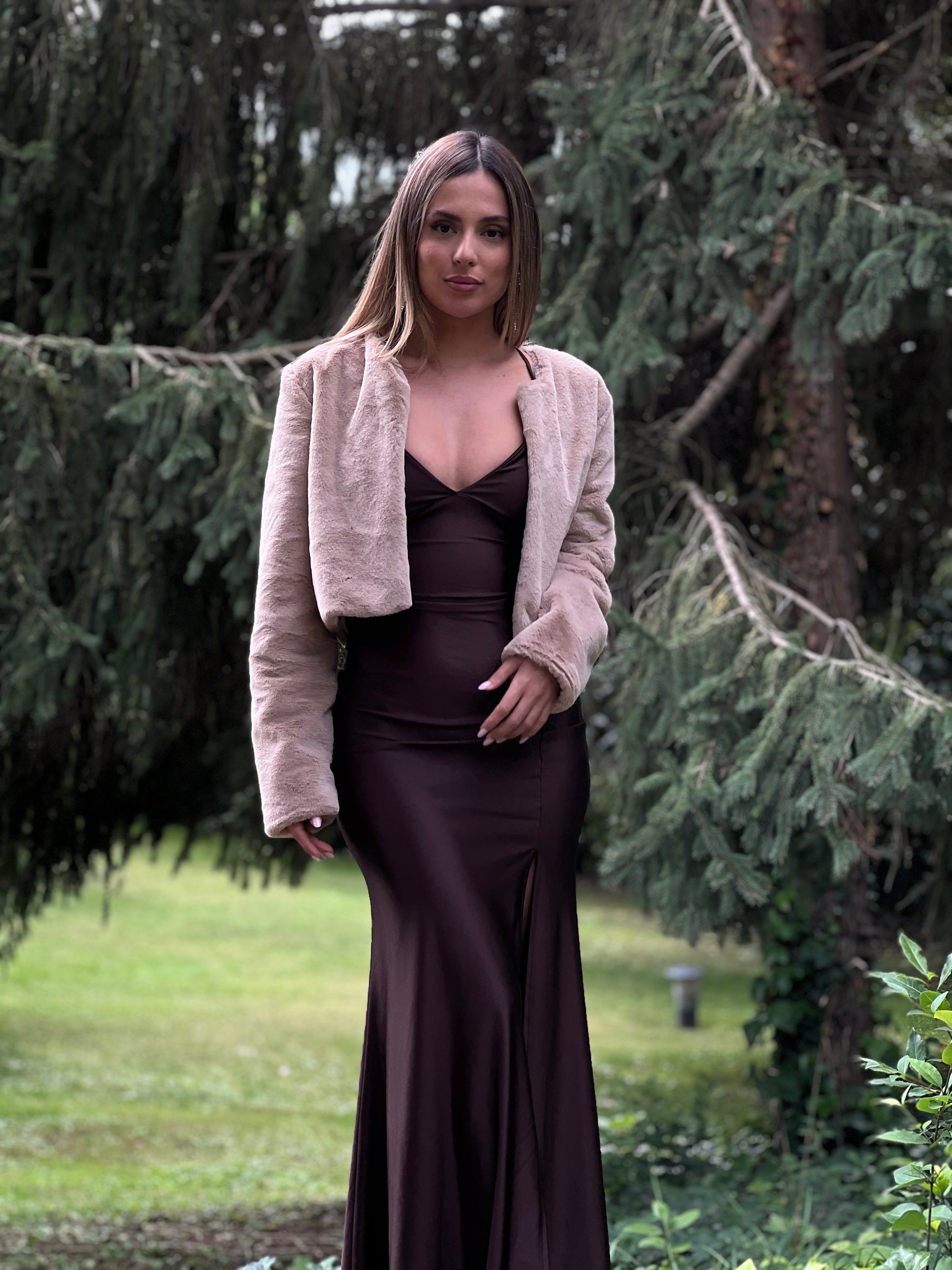 Chaqueta efecto pelo crop