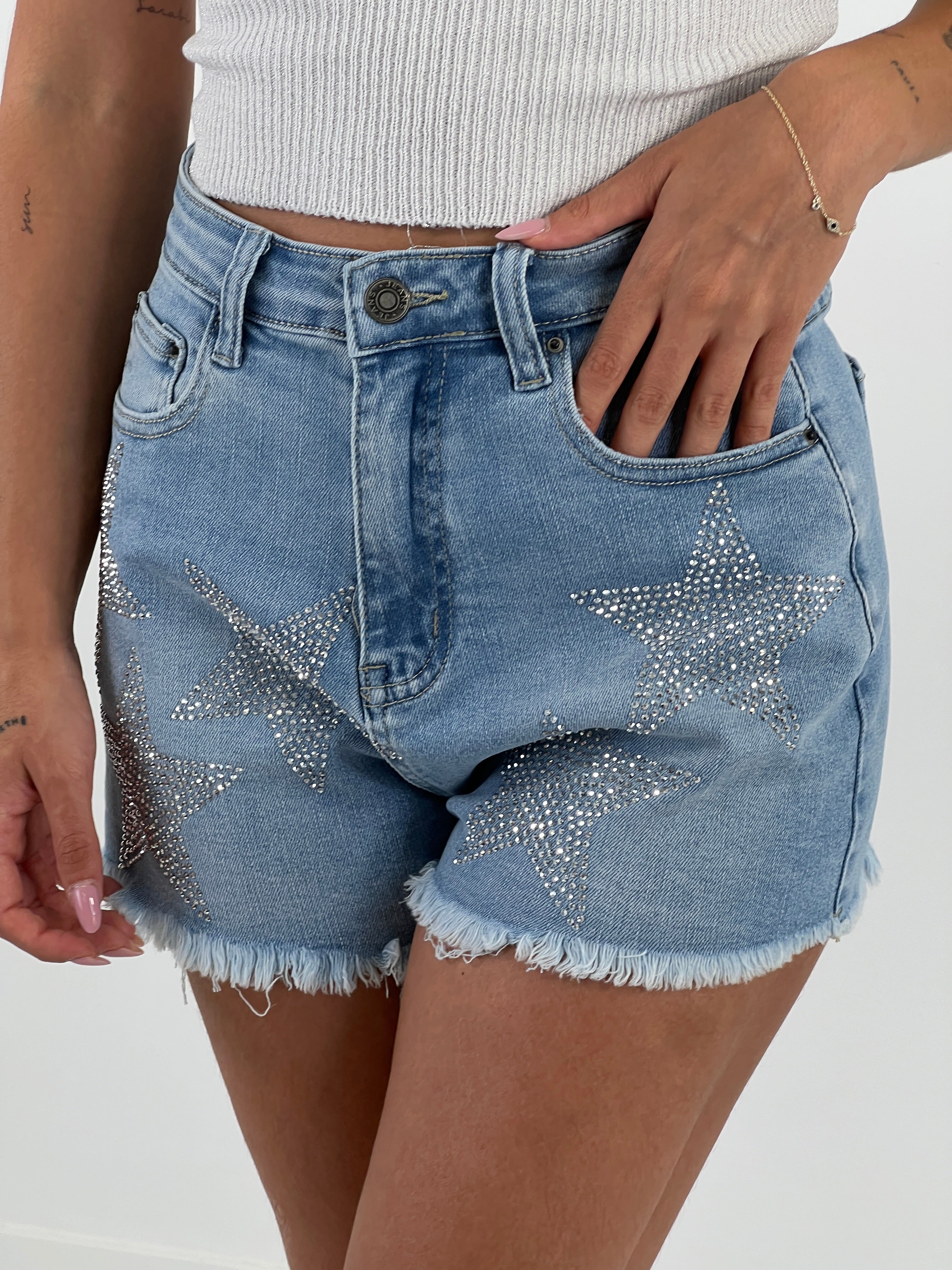 Short denim star rhinestones