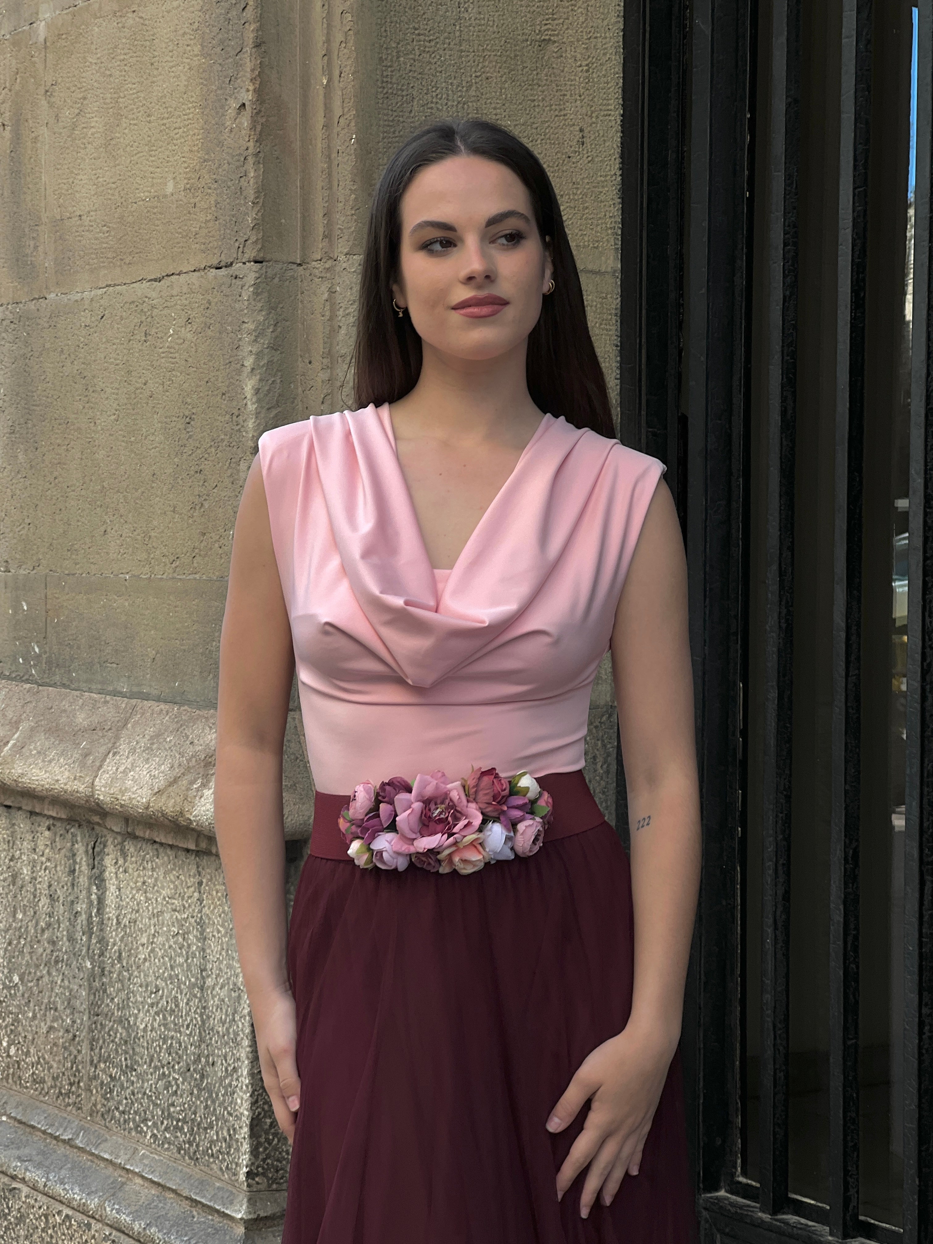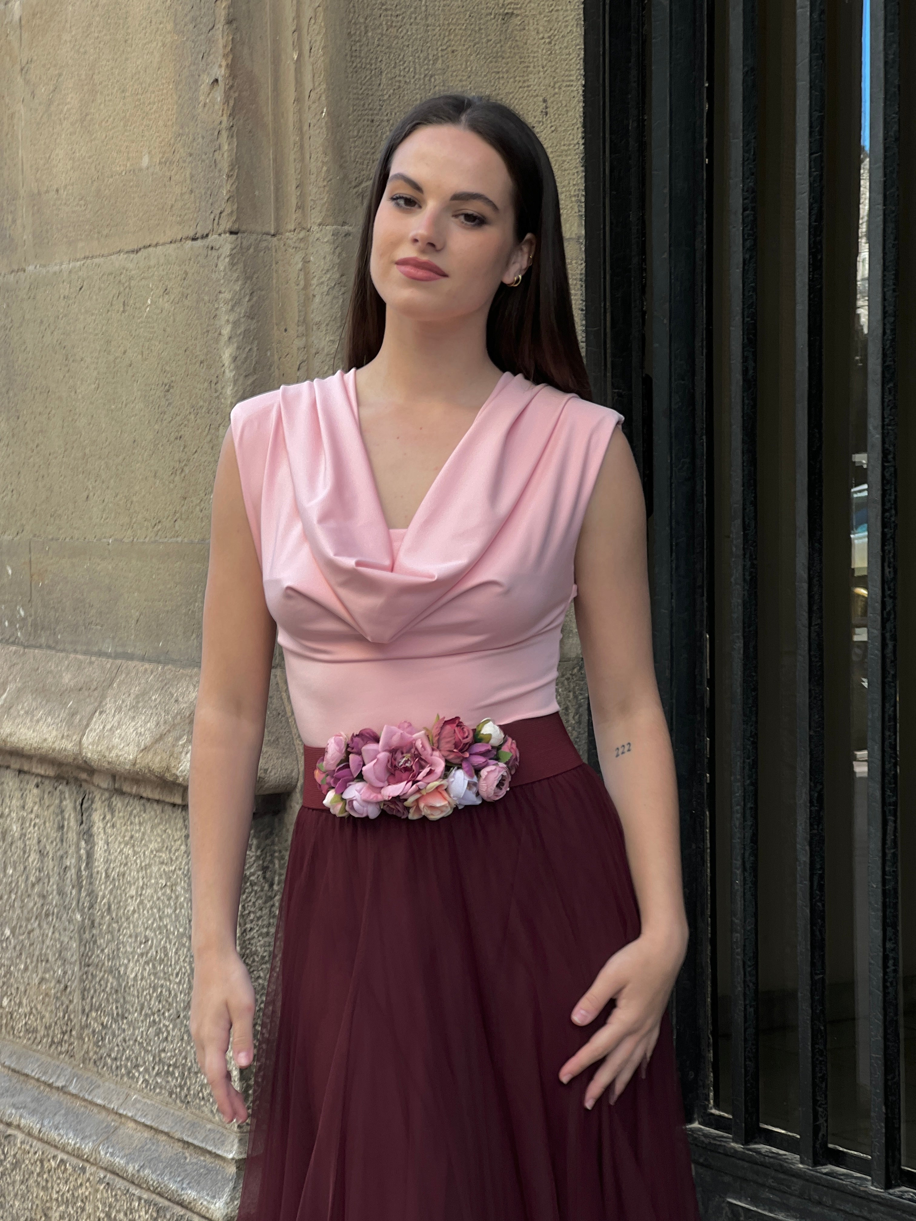 The Olivia deep neckline bodysuit features an elegant and feminine design thanks to its wide strap and gathered waist that enhances the figure. Additionally, its stretchy fabric provides comfort and a perfect fit.