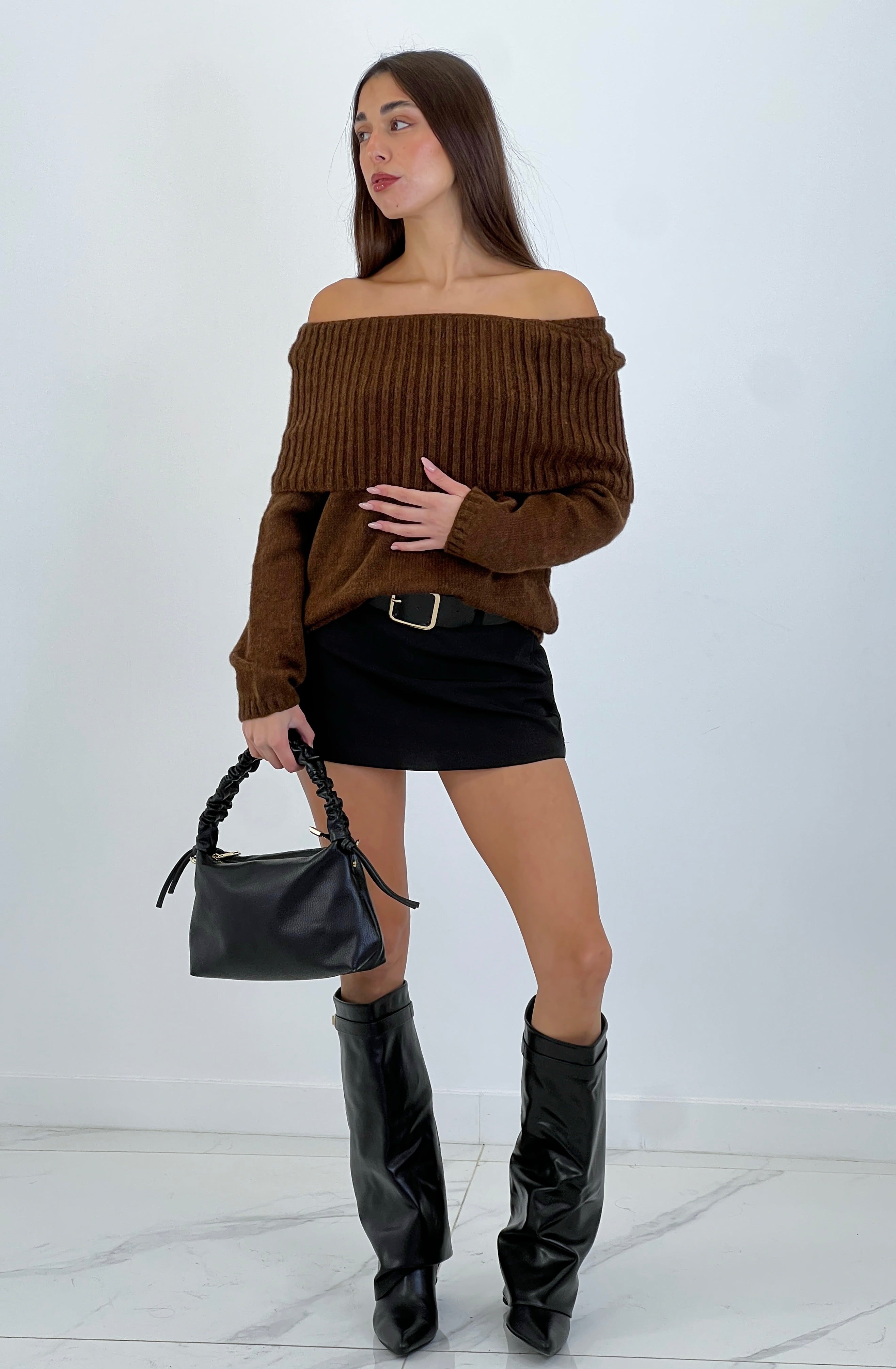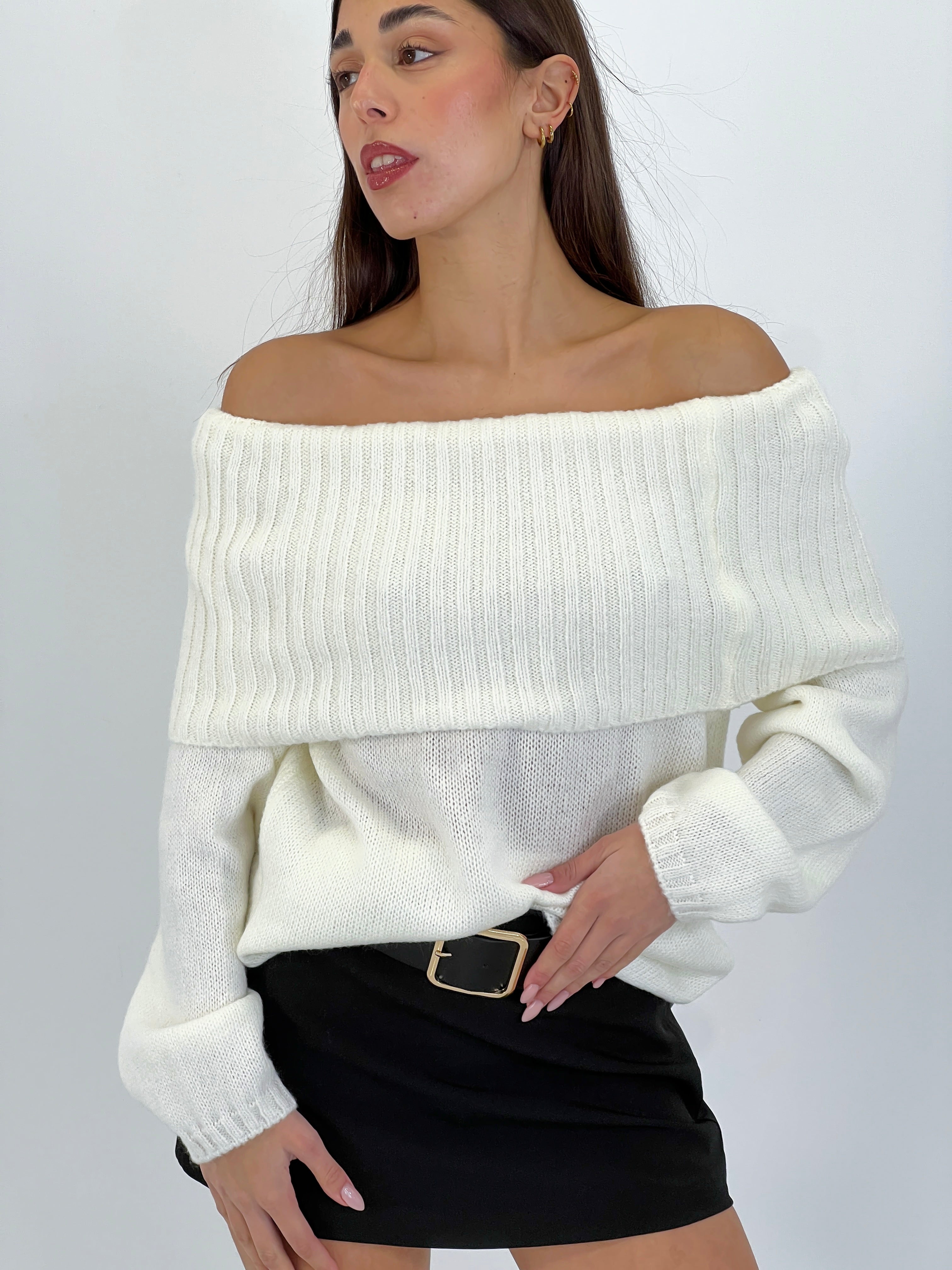 Jersey de escote barco con corte audaz que expone los hombros con elegancia provocadora, perfecto para quien se atreve a destacar. Tejido suave y cómodo que abraza el cuerpo sin renunciar al movimiento. Versátil para combinar con tus piezas favoritas, desde jeans hasta faldas atrevidas. Un básico que no es tan básico.
